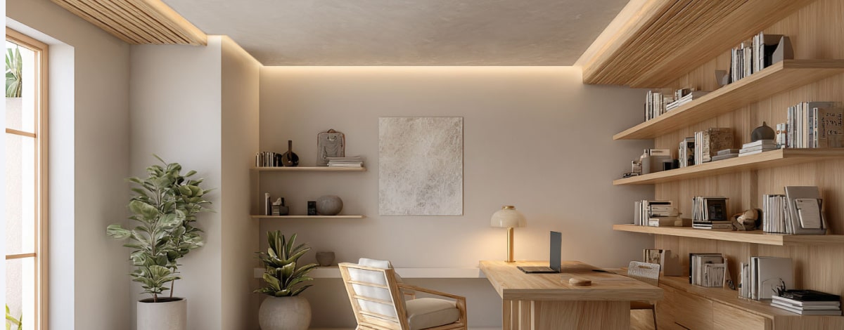 Выполнить зонирование можно и с помощью натяжных потолков со световыми линиями. При этом сами световые линии становятся дополнительным источником света.