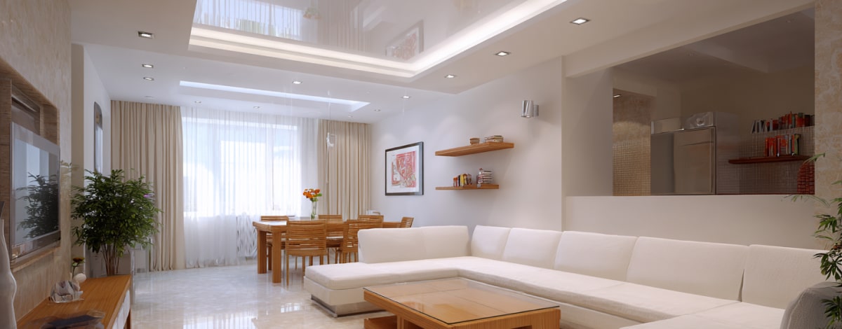 В зависимости от конструктивных особенностей натяжной потолок можно сделать: